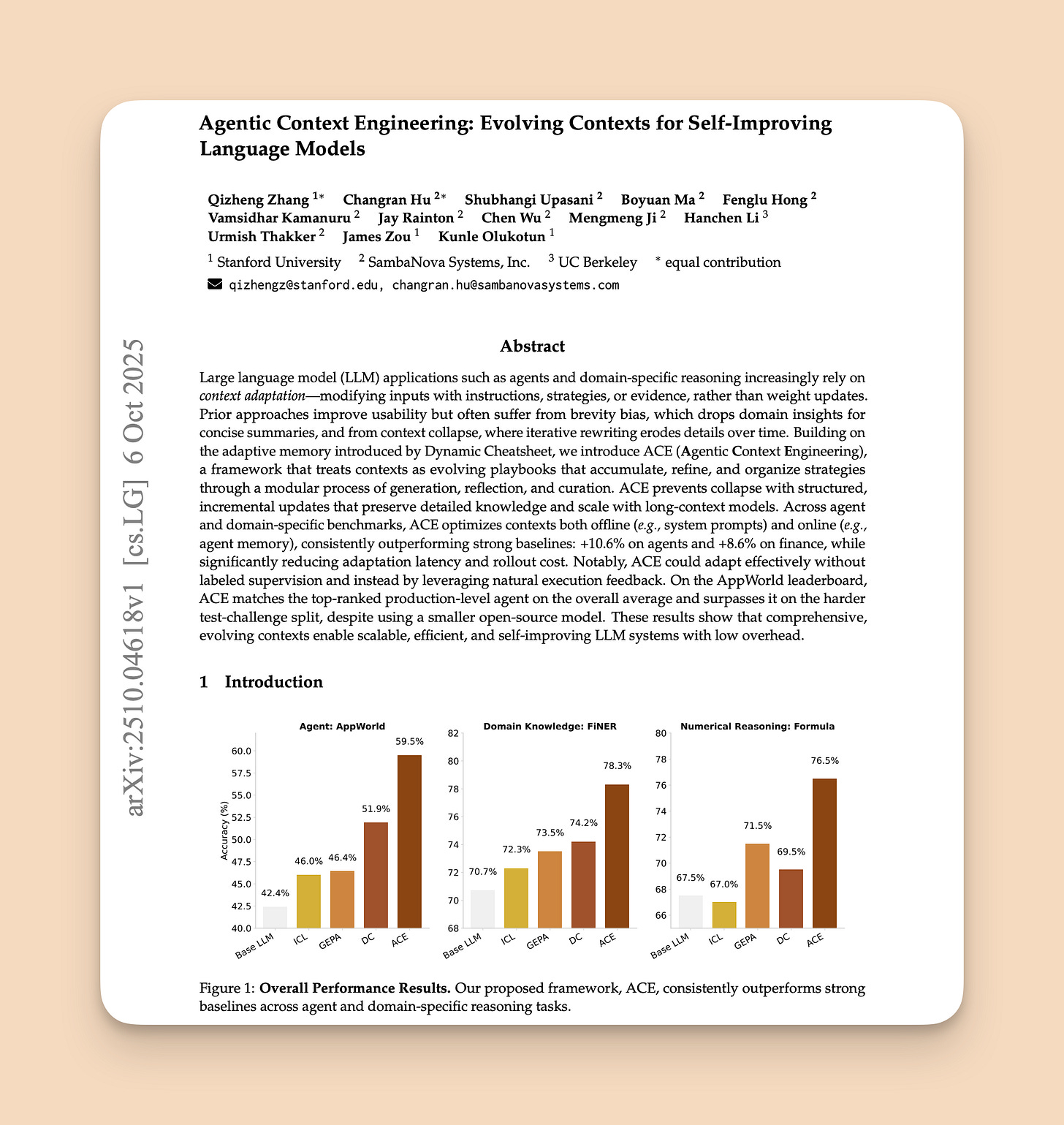 Se llama ACE: Agentic Context Engineering. (paper: Agentic Context Engineering: Evolving Contexts for Self-Improving Language Models)