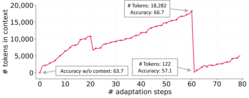 En el paper de Stanford documentaron casos dramáticos: un contexto de 18,282 tokens colapsó a solo 122 tokens en una sola reescritura. La precisión cayó de 66.7% a 57.1%. Peor que no haber adaptado nada.
